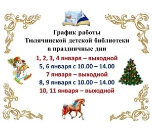 Хөрмәтле райондашлар, сезгә, бәйрәм ялларында Теләче балалар китапханәсенең эшләү графигын куябыз.