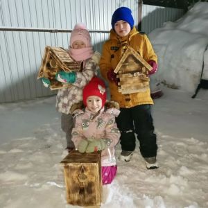 Теләченең 1 нче номерлы балалар бакчасыннан, Каримуллин Алмаз, Гөльназ һәм Азиля сыерчык оясы бәйгесендә катнашалар.