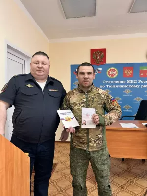 6 февраля начальником ОМВД России по Тюлячинскому району И.Н.Зиннатуллиным был вручен паспорт гражданина РФ Кожокарь Дмитрий Ивановичу, который приобрел упрощенно гражданство РФ вступив в ряды Вооруженных сил РФ.