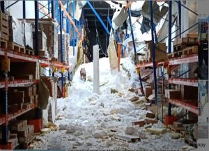 «Магнит» склады түбәсе, җыелган кар аркасында, җимерелеп төшкән