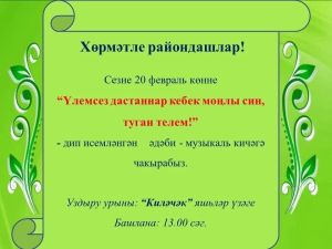 Иртәгә, «Киләчәк» яшьләр үзәгендә «Үлемсез дастаннар кебек моңлы син, туган телем!» дип исемләнгән әдәби-музыкаль кичә узачак.