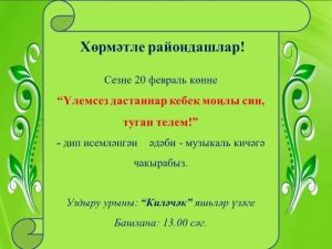 Теләчедә «Үлемсез дастаннар кебек моңлы син, туган телем!» дип исемләнгән әдәби-музыкаль кичә узачак