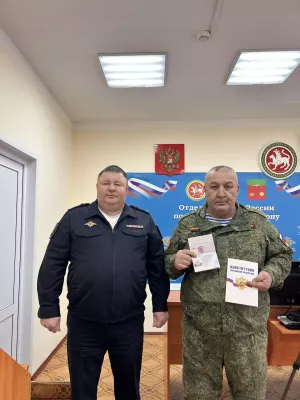 Россия Эчке эшләр министрлыгының Теләче районы буенча бүлеге начальнигы Илнар Зиннәтуллин Ботобаев Аслидин Мәмәткул улына РФ гражданины паспортын тапшырды.